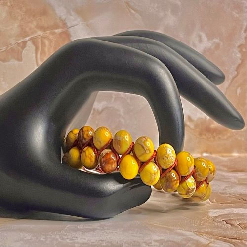 Double Shamballa Yellow Sea Sediment Imperial Jasper Beaded Bracelet